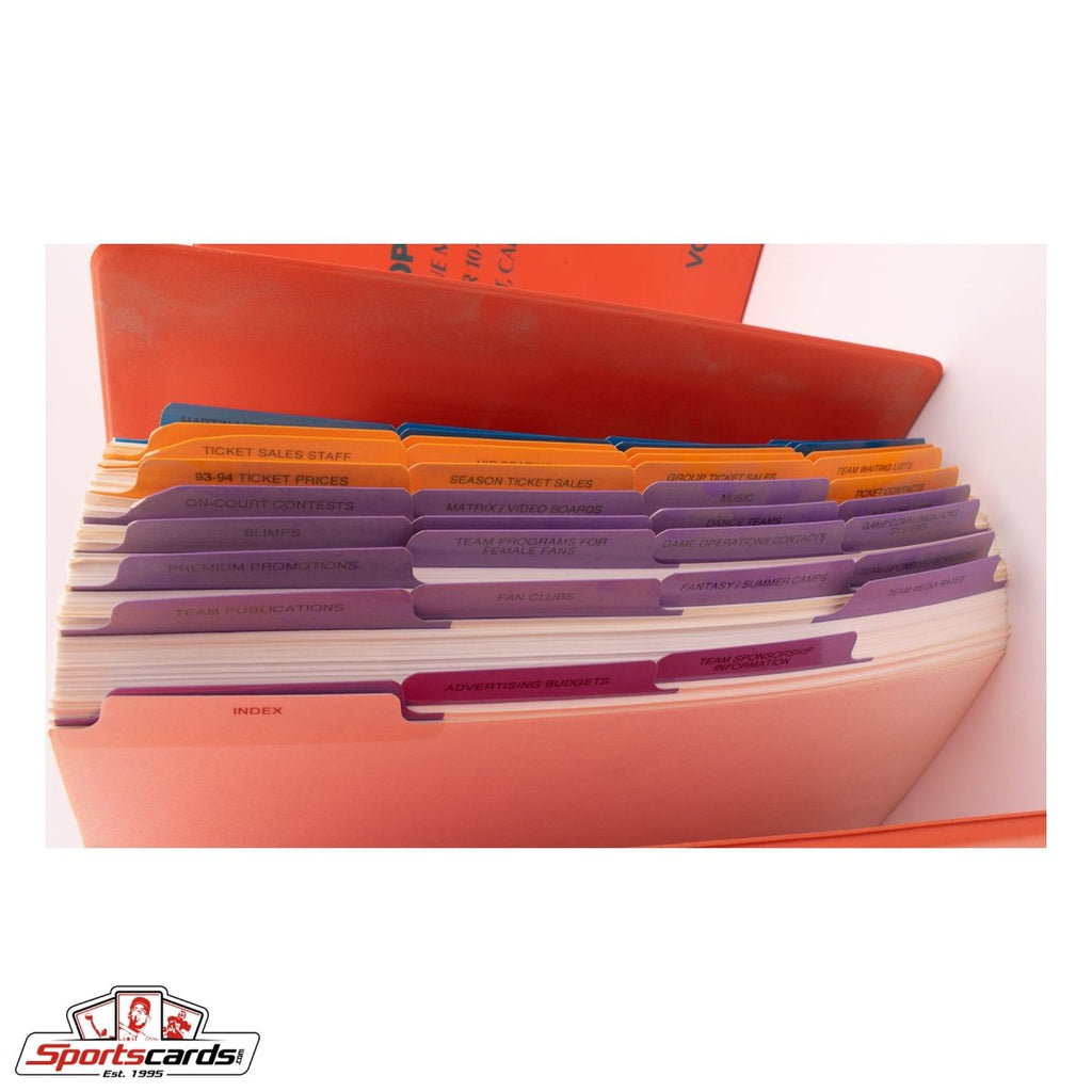 Description: Includes (2) 3-ring binders from the 1993 league meetings in California and featuring a treasure trove of league information including front office contact information for every team featuring many recognizable names, ticketing and licensing information, and much more. This would provide hours of enjoyment for any basketball fan who is interested in the inner workings of the NBA.