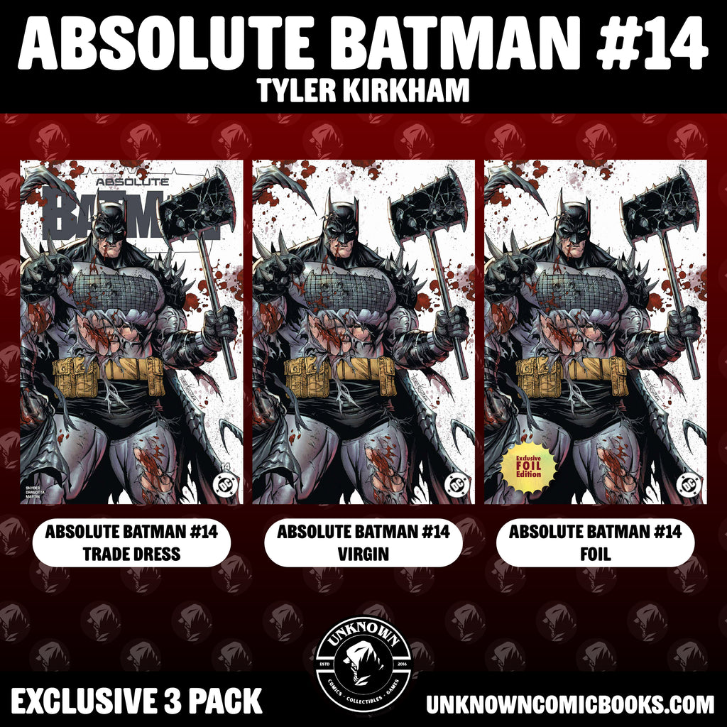 [3 PACK] ABSOLUTE BATMAN #14 TYLER KIRKHAM EXCLUSIVE BATLLE DAMAGED BATMAN VAR (11/2025)