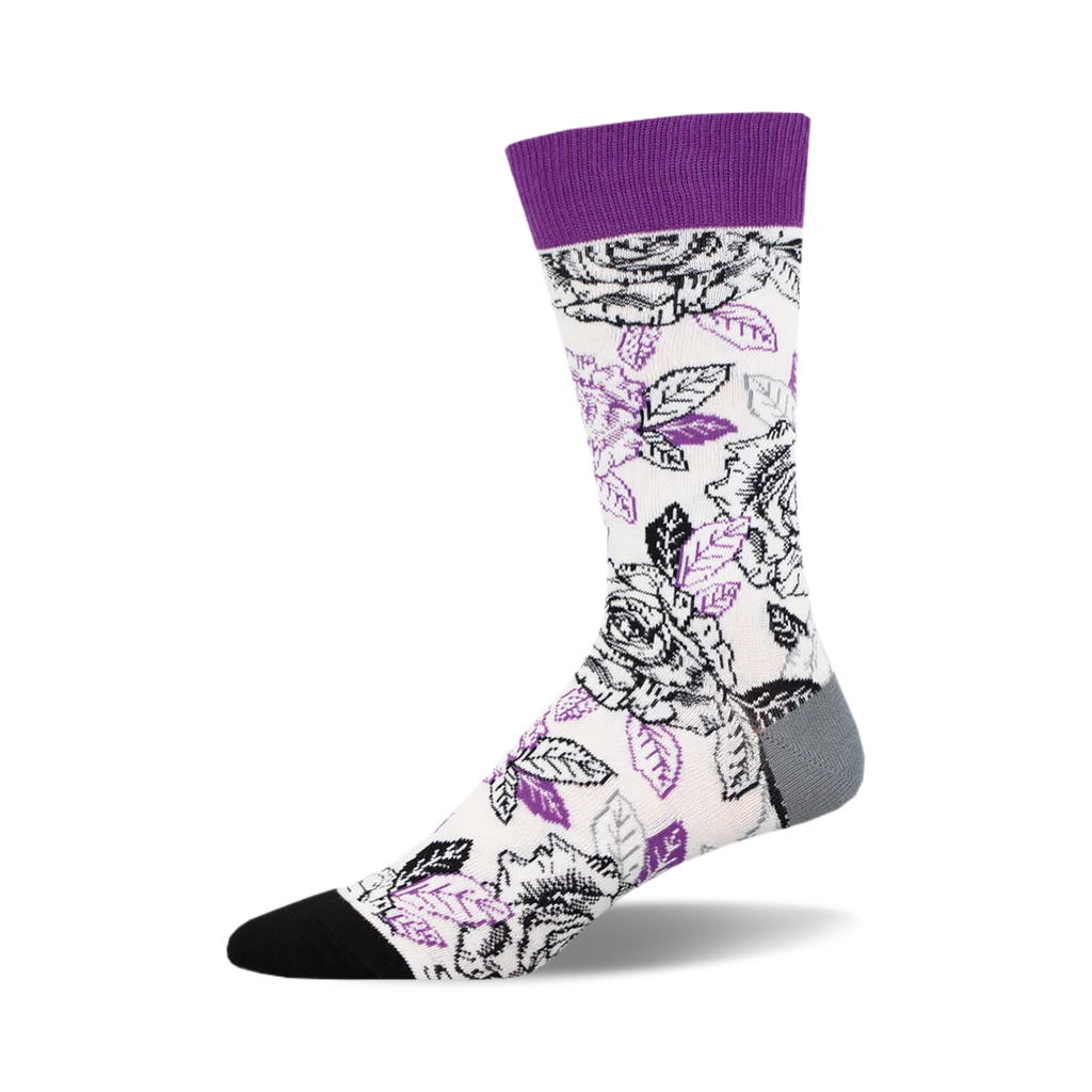 Introducing the Ace Roses, where elegance meets edginess in every step! Adorned with an intriguing pattern of black and purple roses, these crew socks are more than just footwear; they're a statement. Perfect for jazzing up any outfit, or crowning your ensemble at parties and casual gatherings alike. So why blend in when you can stand out? Slide into the spotlight with Ace Roses and show off those florals with a twist of daring colors!