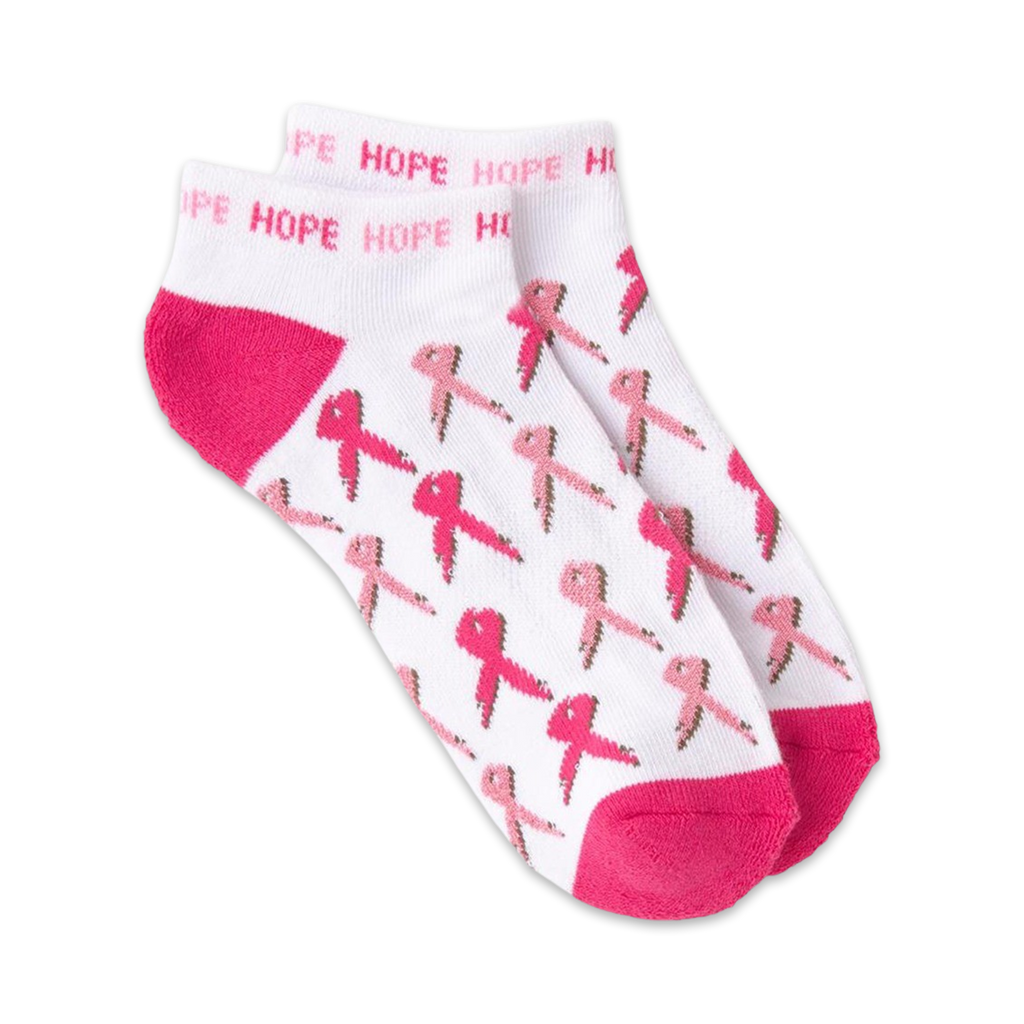 Ribbons of hope, wrapped around your feet in delicate pink. Slip into these ankle socks and let the positivity flow through you. The word "hope" is playfully scattered throughout the design, like a gentle reminder that even the smallest flicker of optimism can make a world of difference.