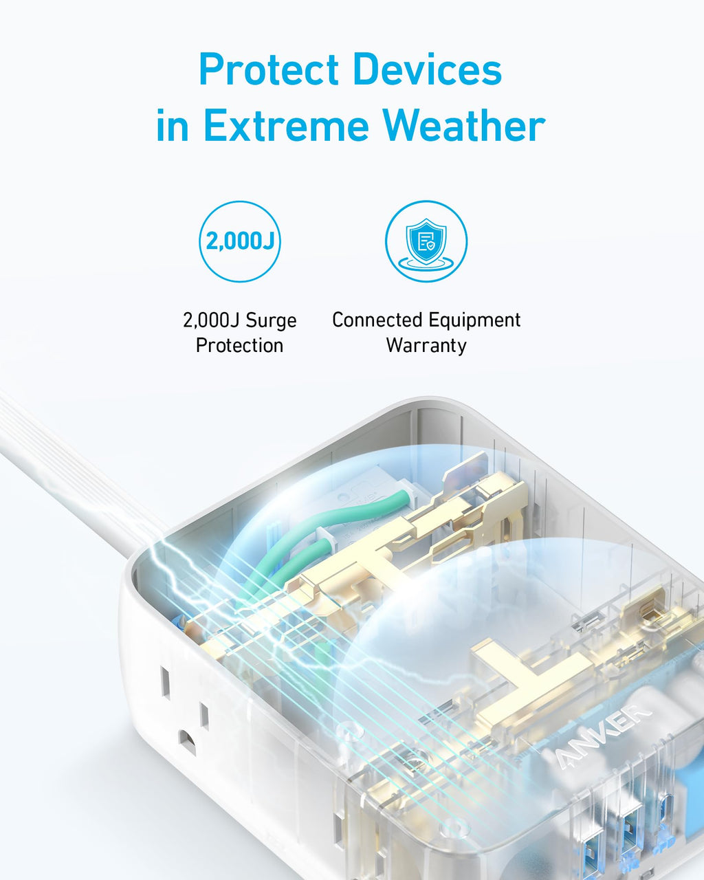 Built-In 2000J Surge Protection: Keeps your connected devices safe from sudden power surges and voltage spikes, even in a storm.