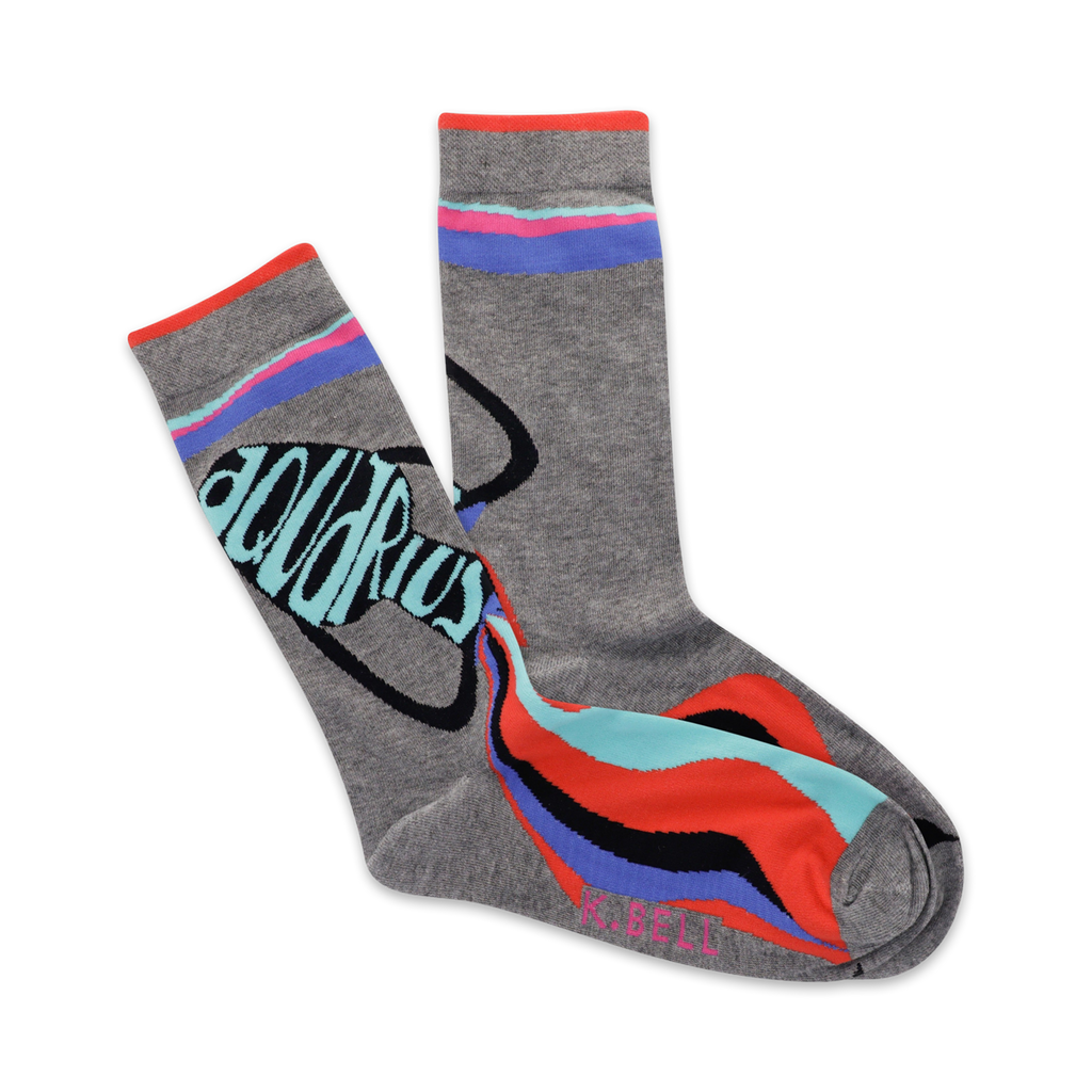 What's the best way to ride the wave of life's ups and downs? With a pair of Aquarius socks! These crew socks for women feature a pattern of waves in black, blue, red, and pink, topped off with a cursive "A" symbol with a fishtail. Put on a pair and feel like you can conquer anything, just like the water sign associated with this constellation. These unique and stylish socks make a great gift for anyone who loves astrology, the ocean, or just having fun.