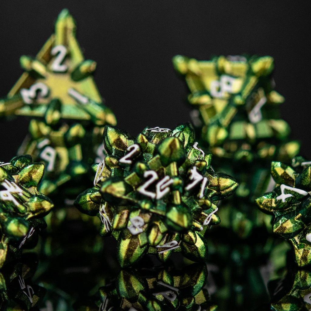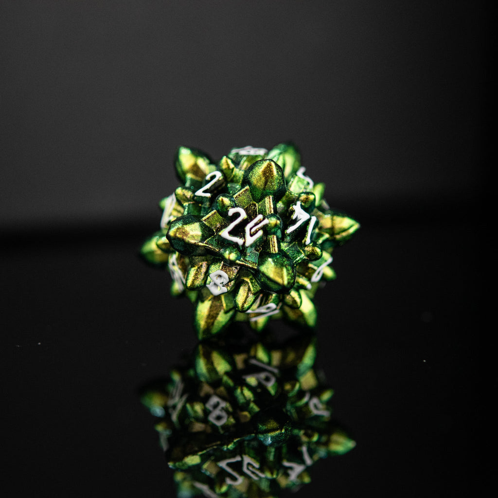 Our metal dice sets are all cast from zinc alloy metal to assure better balanced rolls. This set is perfect for any RPG and will be sure to impress at your upcoming session! Every set comes with its own metal dice tin for easy storage and a winning presentation.
