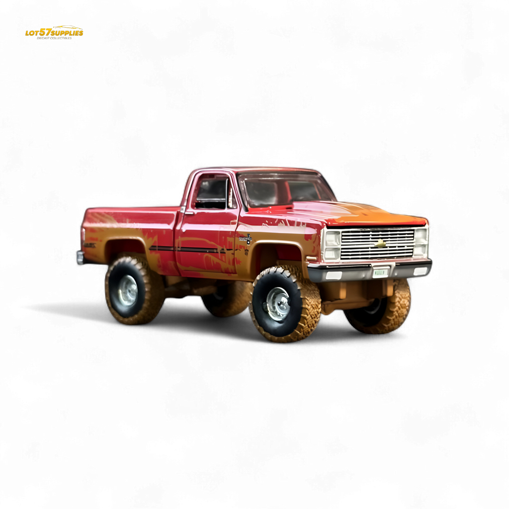 Auto World 1983 Chevrolet Silverado K10 4x4 Muddy LIFTED Squarebody 1:64