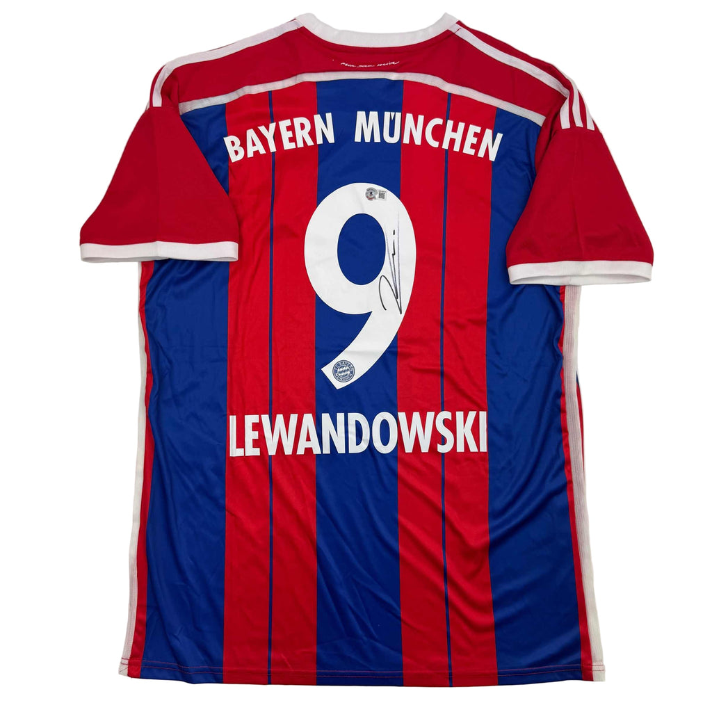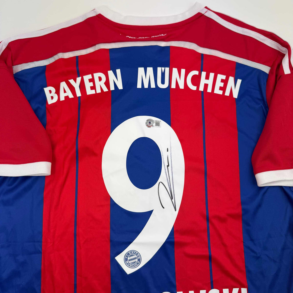 Autographed/Signed Robert Lewandowski FC Bayern Munich Red Soccer Futbol Jersey Beckett BAS COA