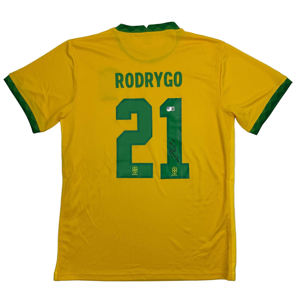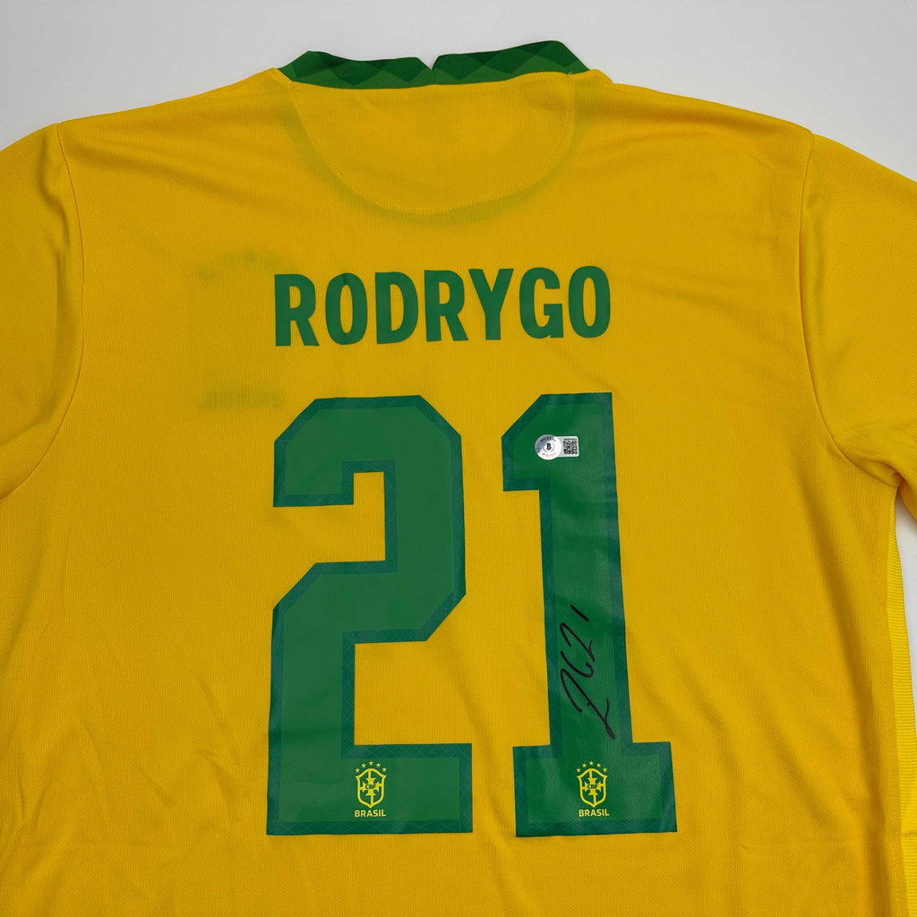 Autographed/Signed Rodrygo Silva de Goes Brazil Yellow Soccer World Cup Jersey Beckett BAS COA