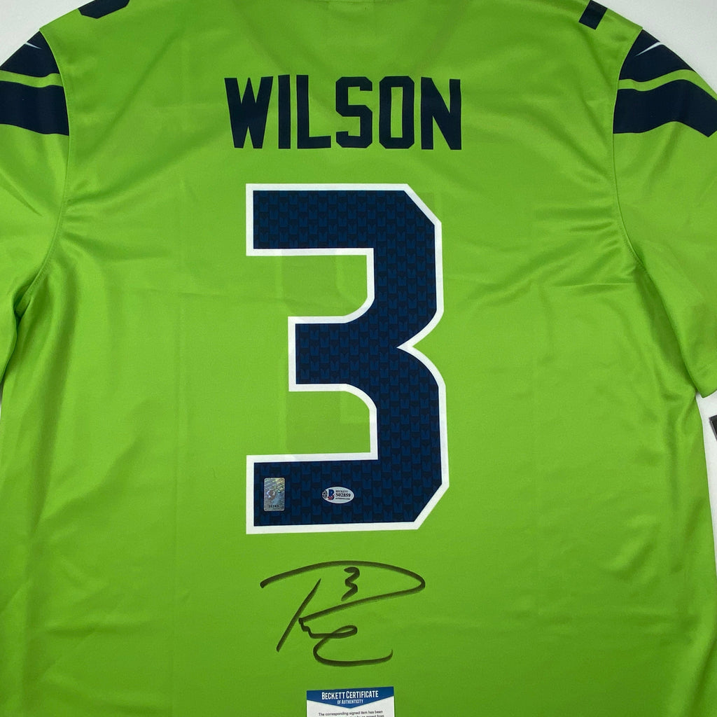 Autographed/Signed Russell Wilson Seattle Seahawks Green Color Rush Authentic Football Jersey Beckett BAS COA