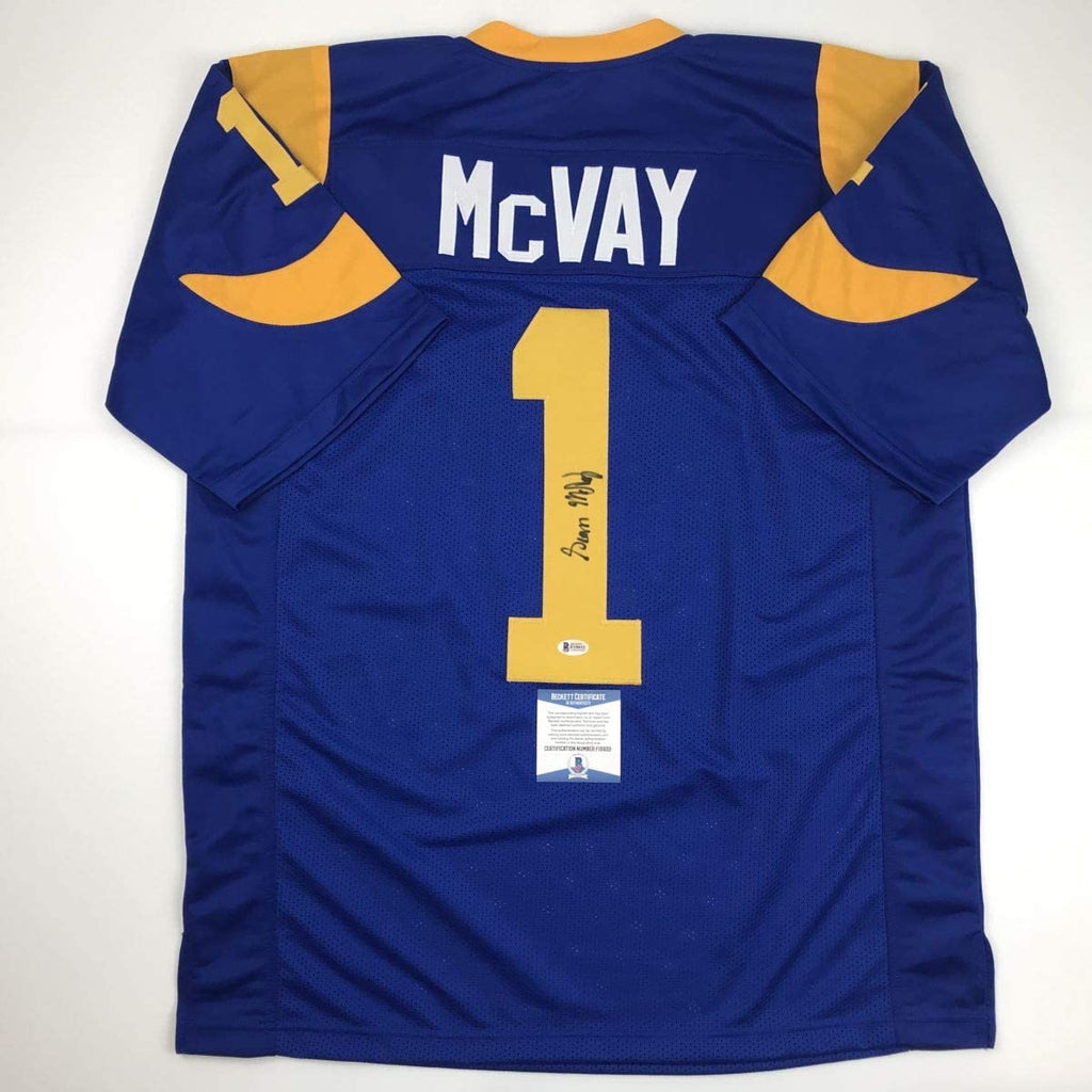 Autographed/Signed Sean McVay Los Angeles LA Retro Blue Football Jersey Beckett BAS COA