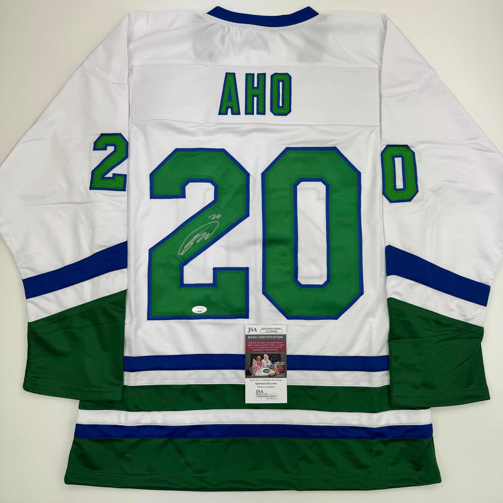 Autographed/Signed Sebastian Aho Hartford White Retro Hockey Jersey JSA COA