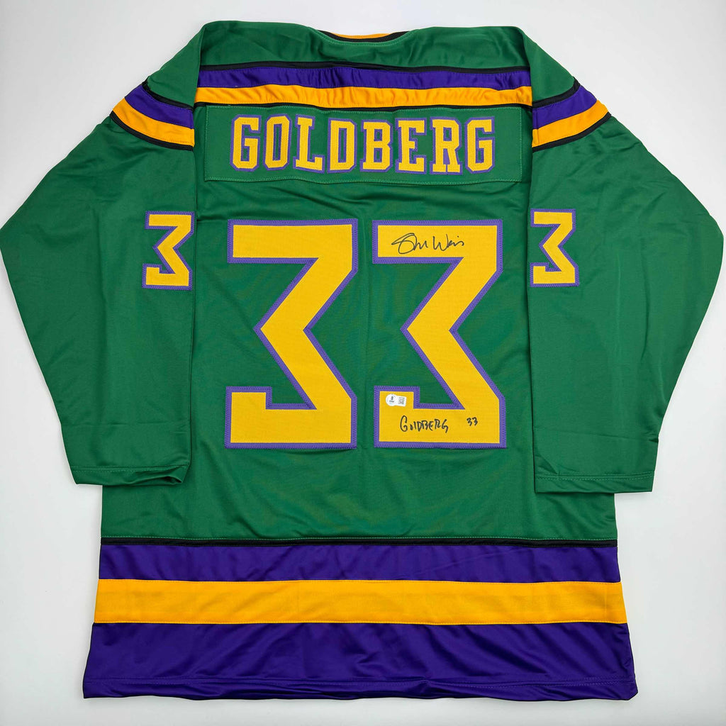 Autographed/Signed Shaun Weiss Greg Goldberg The Mighty Ducks Green Hockey Jersey Beckett BAS COA