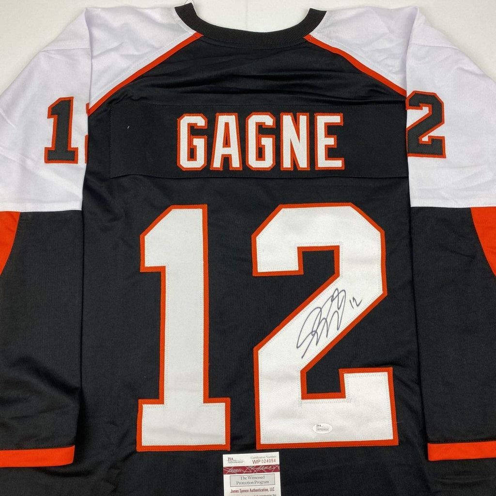 Autographed/Signed Simon Gagne Philadelphia Black Hockey Jersey JSA COA