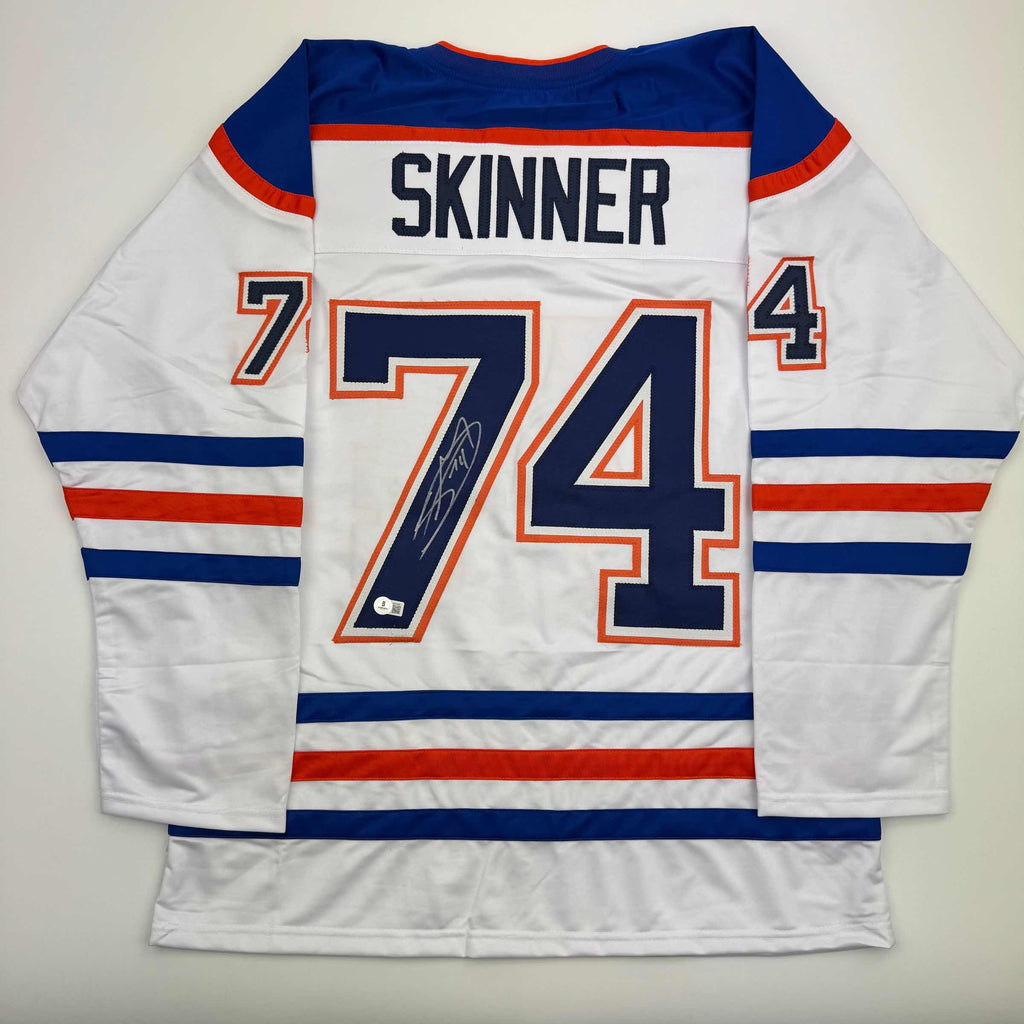Autographed/Signed Stuart Skinner Edmonton White Hockey Jersey Beckett BAS COA