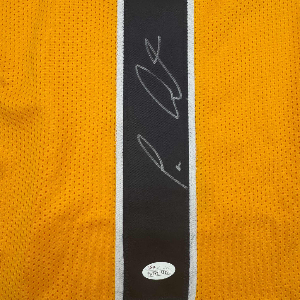 Jersey has no brand names or logos. This is a custom jersey and was not manufactured by or in any manner associated with any professional sports league or manufacturer. This custom jersey carries no professional sports league designation. The item is intended to be an autographed collectible. The custom jersey displays the name and number of the player. This item in no way is affiliated with or connected to any professional sports organization. Size is XL.