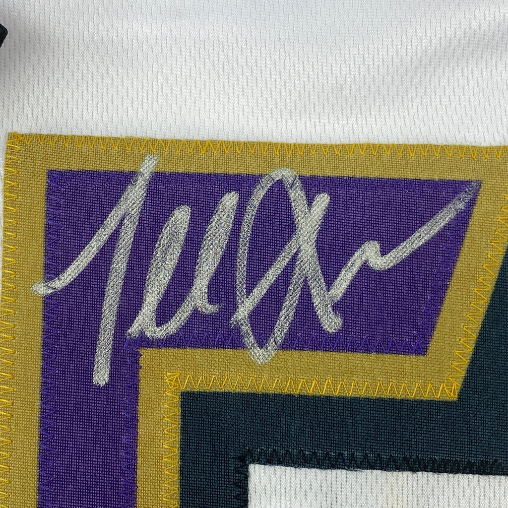Jersey has no brand names or logos. This is a custom jersey and was not manufactured by or in any manner associated with any professional sports league or manufacturer. This custom jersey carries no professional sports league designation. The item is intended to be an autographed collectible. The custom jersey displays the name and number of the player. This item in no way is affiliated with or connected to any professional sports organization. Size is XL.