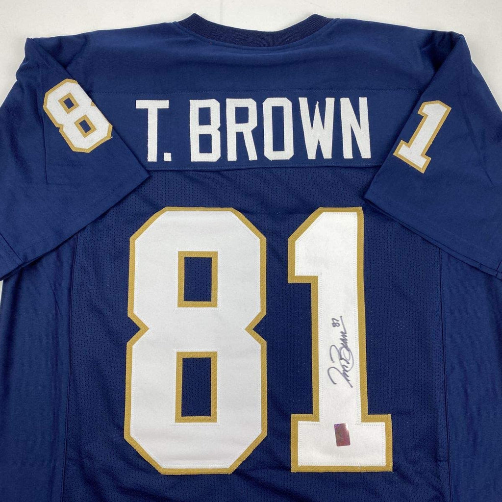 Autographed/Signed Tim Brown Notre Dame Blue College Football Jersey GTSM COA Holo Only