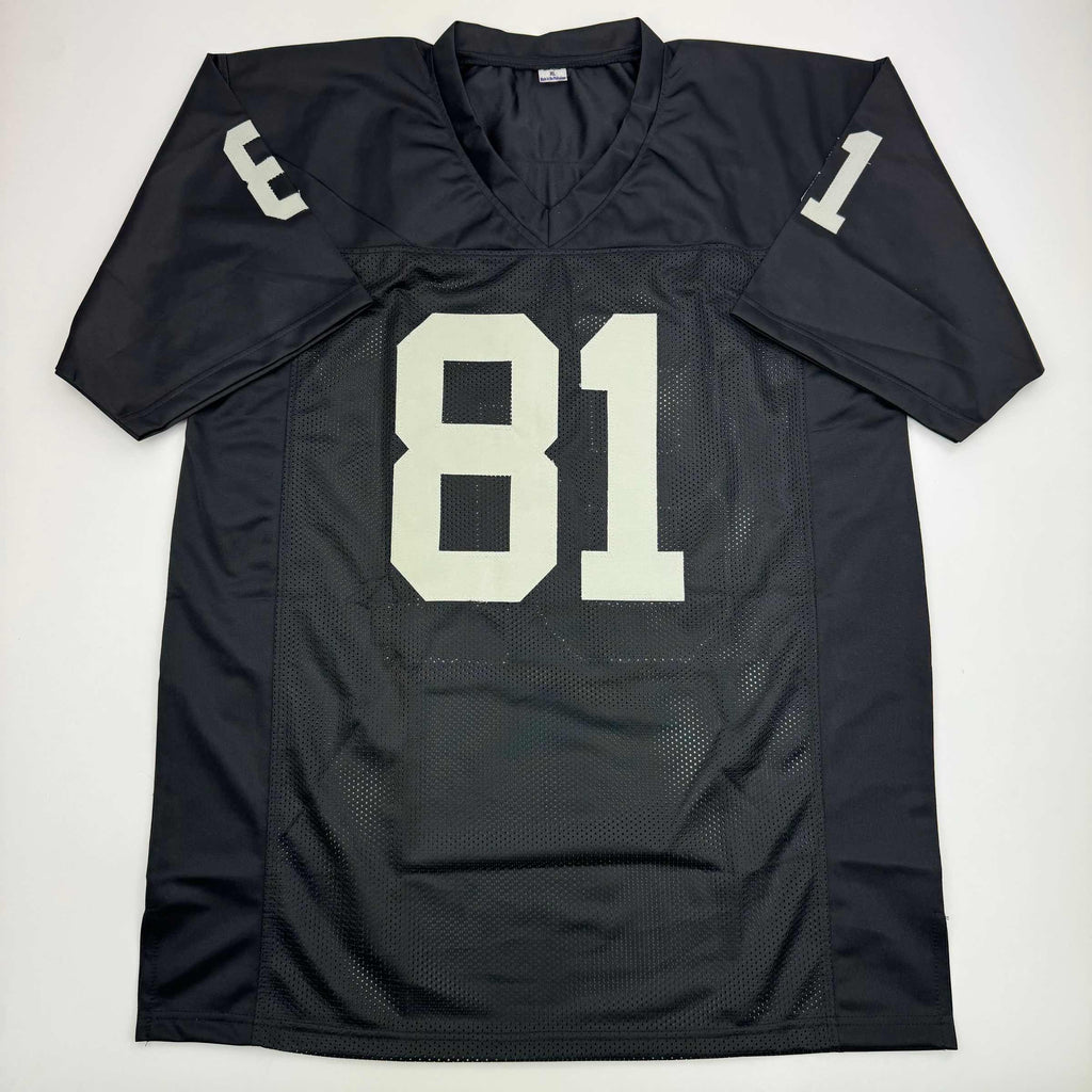 Autographed/Signed Tim Brown Oakland Black Football Jersey Beckett BAS COA