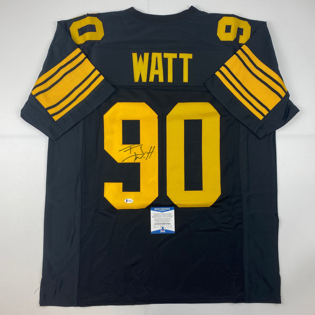 Autographed/Signed TJ T.J. Watt Pittsburgh Color Rush Football Jersey Beckett BAS COA