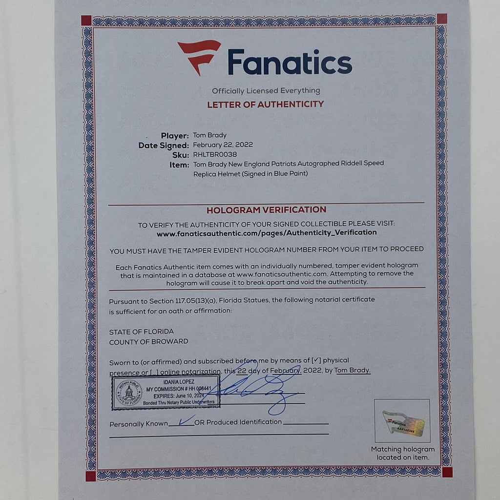 Hall of Fame Sports MemorabiliaSKU: FSH-TOMBRADY-NE-FANATICS-LOA