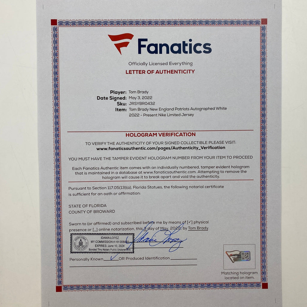Hall of Fame Sports MemorabiliaSKU: J-TOMBRADY-NE-WHITE-LIM-FANATICS-LOA