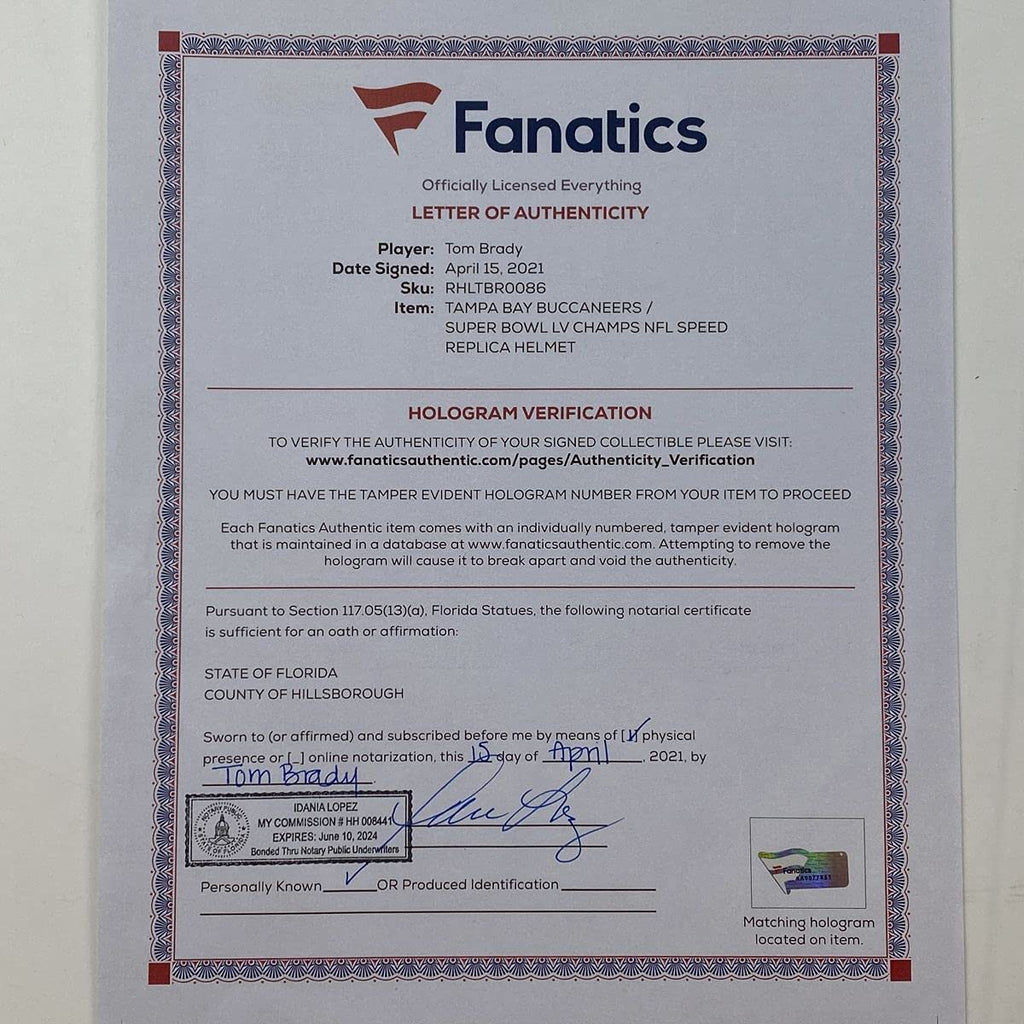 Autographed/Signed Tom Brady Super Bowl LV Tampa Bay Buccaneers Full Size FS F/S Replica Football Helmet Fanatics COA/LOA