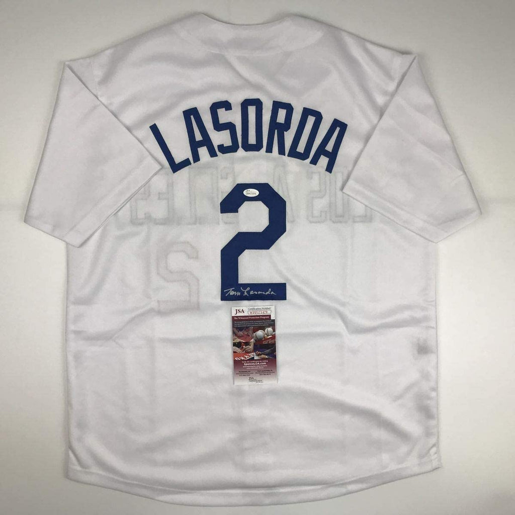 Autographed/Signed Tommy Tom Lasorda Los Angeles LA White Baseball Jersey JSA COA