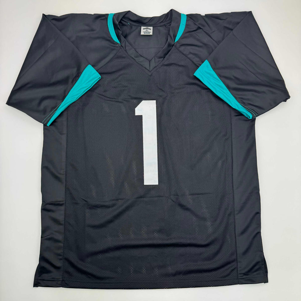 Autographed/Signed Travis Etienne Jr. Jacksonville Black Football Jersey Beckett BAS COA
