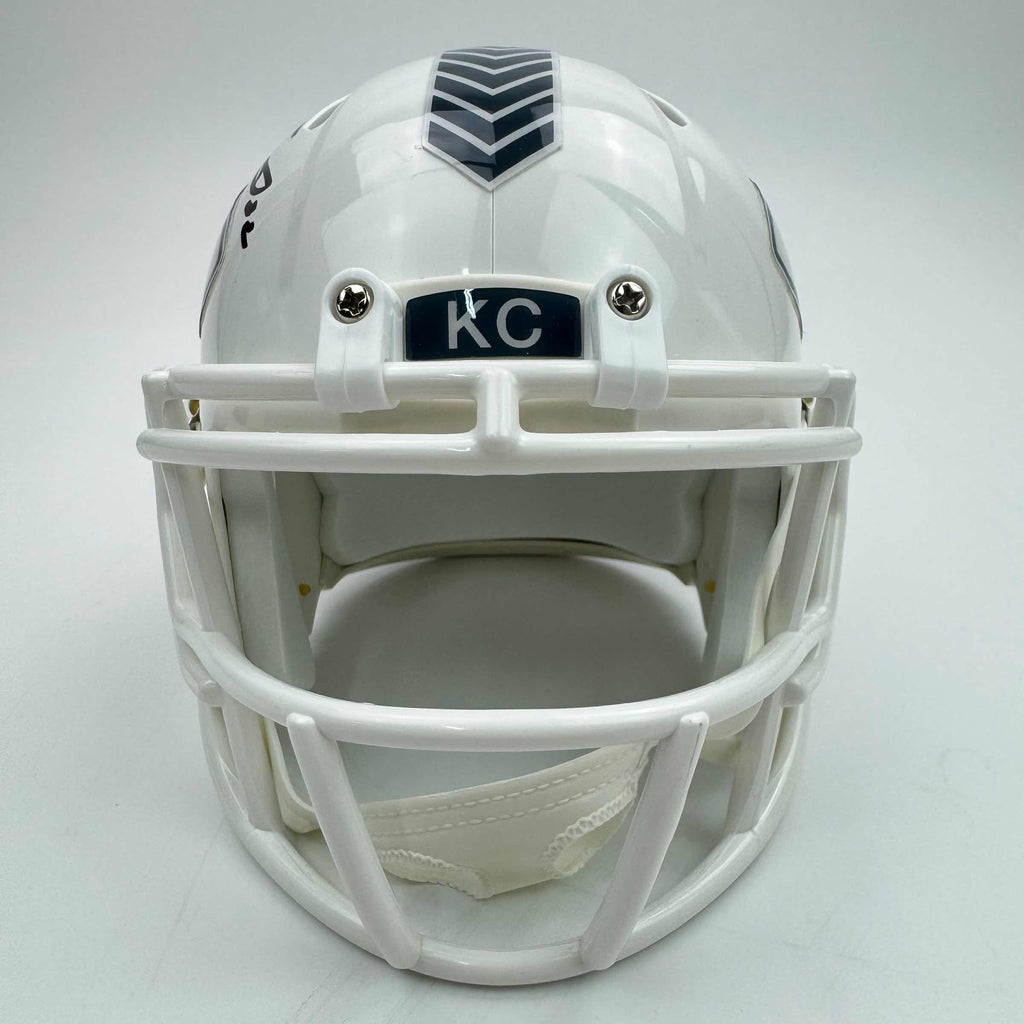 Autographed/Signed Trent McDuffie Kansas City Chiefs White Salute to Service Mini Football Helmet Beckett BAS COA