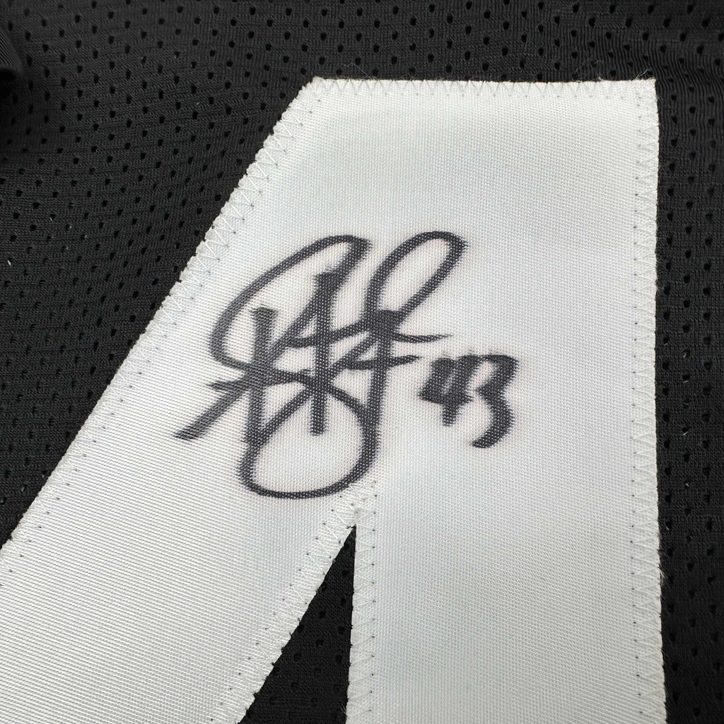 Jersey has no brand names or logos. This is a custom jersey and was not manufactured by or in any manner associated with any professional sports league or manufacturer. This custom jersey carries no professional sports league designation. The item is intended to be an autographed collectible. The custom jersey displays the name and number of the player. This item in no way is affiliated with or connected to any professional sports organization. Size is XL.