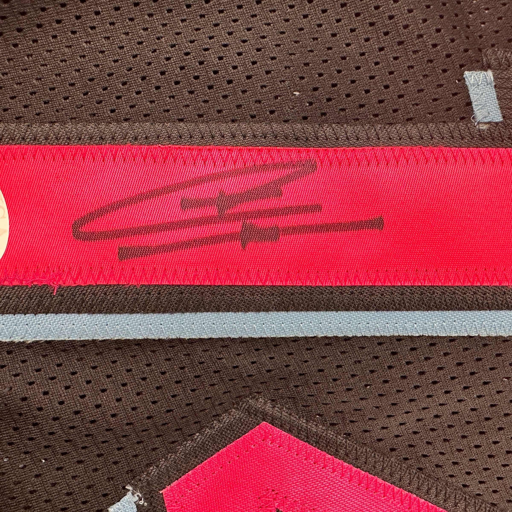 Jersey has no brand names or logos. This is a custom jersey and was not manufactured by or in any manner associated with any professional sports league or manufacturer. This custom jersey carries no professional sports league designation. The item is intended to be an autographed collectible. The custom jersey displays the name and number of the player. This item in no way is affiliated with or connected to any professional sports organization. Size is XL.