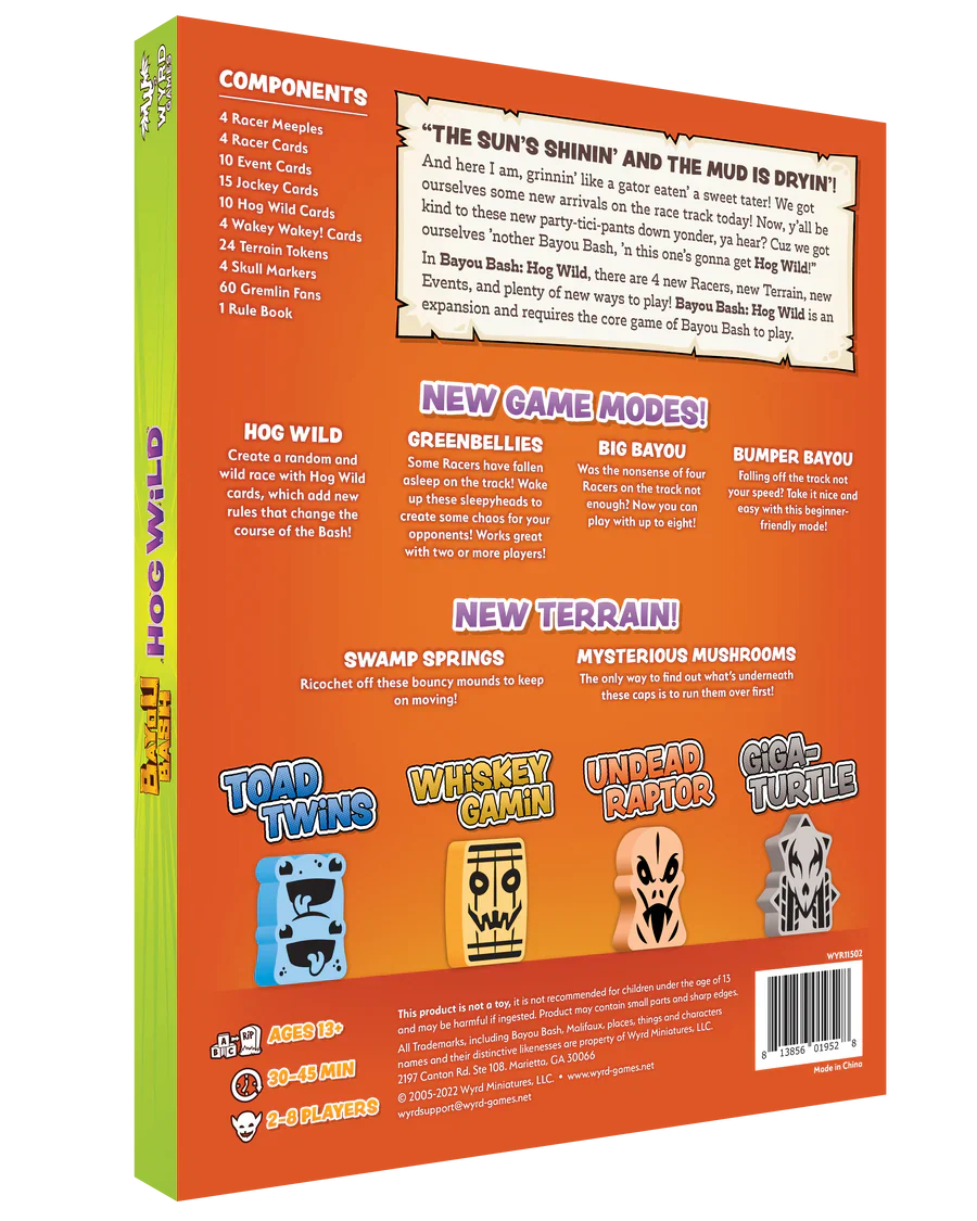 In addition to the newly added Hog Wild Cards, this Expansion introduces multiple new game modes, including Big Bayou allowing for eight racers on the track at the same time! Within Big Bayou you’ll be racing along a double-wide track for a straight shot at the gold medal, so be sure to grab 7 of your closest friends and head down to the racetrack. And for those of us that don’t have 7 friends, fear not, for the Greenbellies have arrived. Greenbellies are old and cranky racers who don’t have much left in their racing days but have instead chosen to live out their lives on the track itself. In a race with as few as two players, they can add a new level of exciting racing strategy.