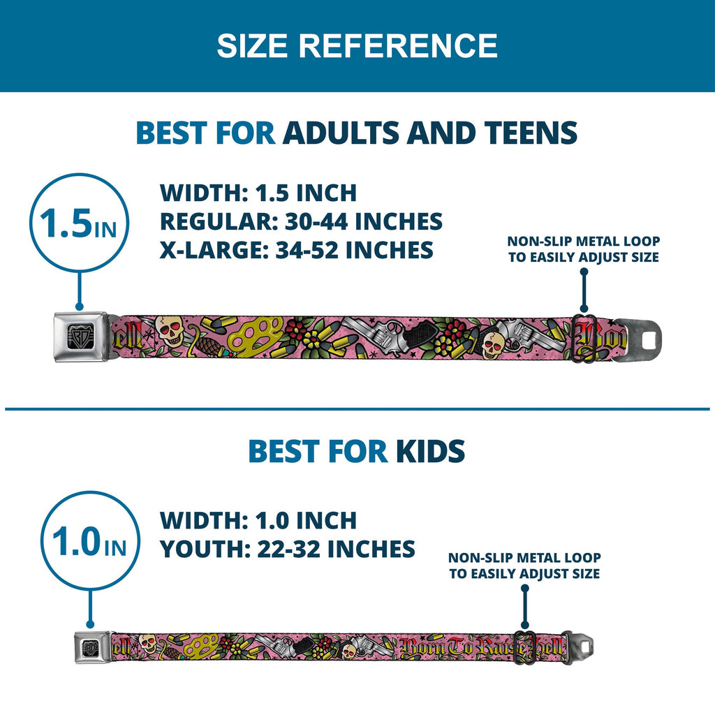 Buckle-Down's iconic Seatbelt Belt is a cool, smart, and exciting blend of fashion and function. Always a conversation starter, our Seatbelt Belt adjusts to perfectly fit your waist while showcasing your unique sense of style. Our Seatbelt Belts are made with authentic automotive style seatbelt buckles making them easy to open and close at the push of a button. Our adult-size Seatbelt Belts are 1.5 inches wide and our kid-sized Seatbelt belts are 1.0 inch wide. This product is Handcrafted in USA by Buckle-Down Inc. and officially licensed by Buckle-Down.