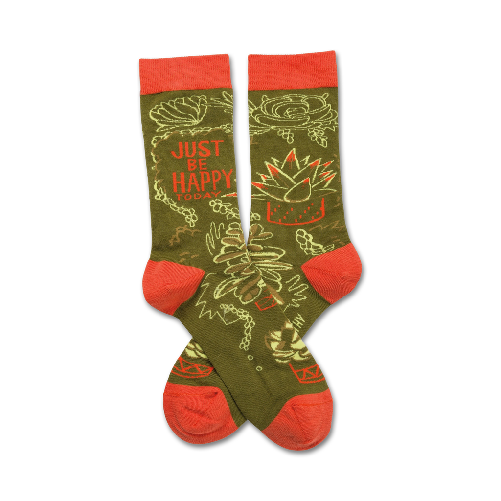 Ready to bring a smile to your feet? Meet our Be Happy Today socks! Life's too short to not embrace your inner happiness, so kick off your blues and slip into a pair of these vibrant green crew socks. Featuring a cheerful pattern of desert plants in terracotta pots and the inspiring message "JUST BE HAPPY TODAY," these socks will add a touch of joy to your every step. Put 'em on the next time you need a reminder that happiness blooms even in the driest of times. #HappyFeet #BloomWhereYouAre