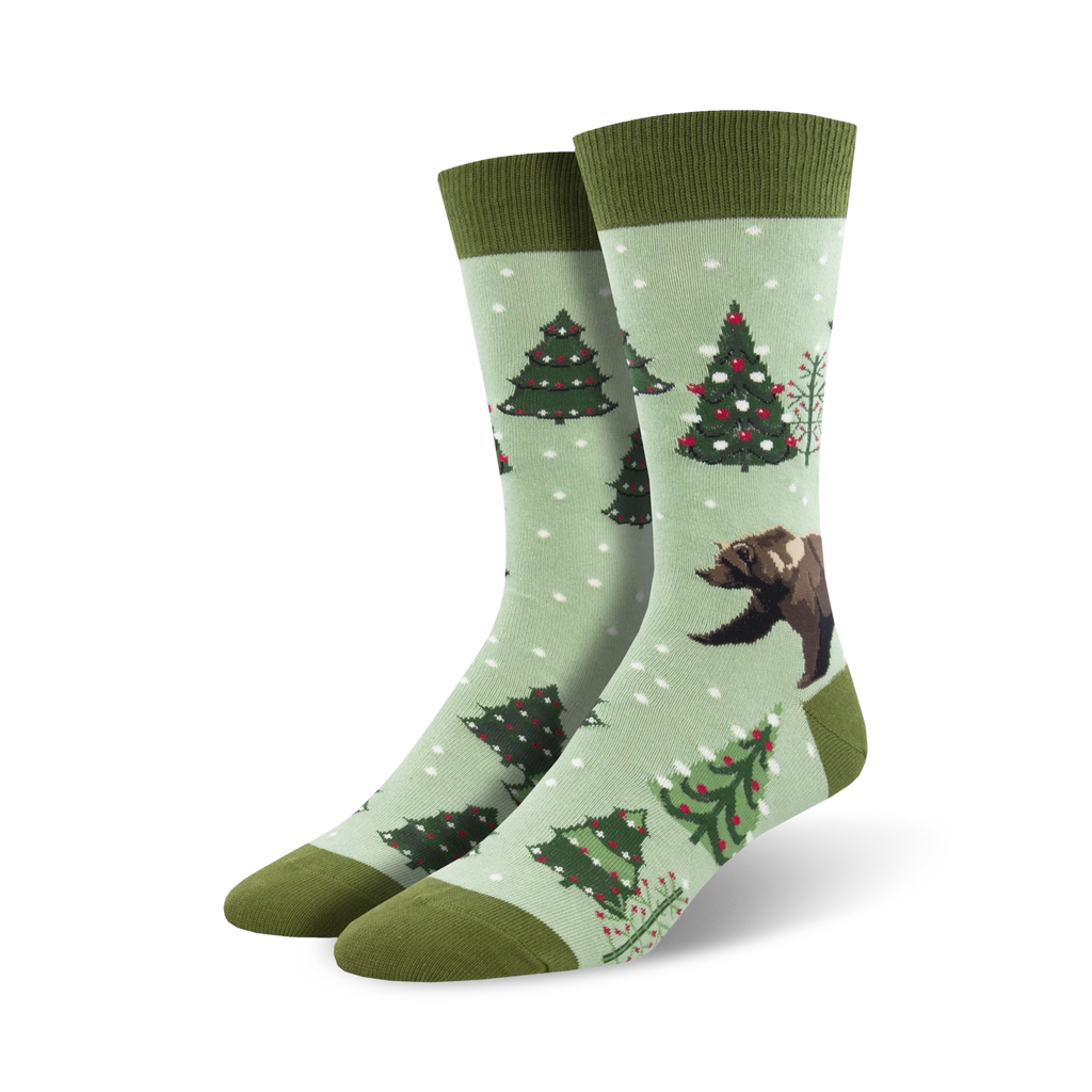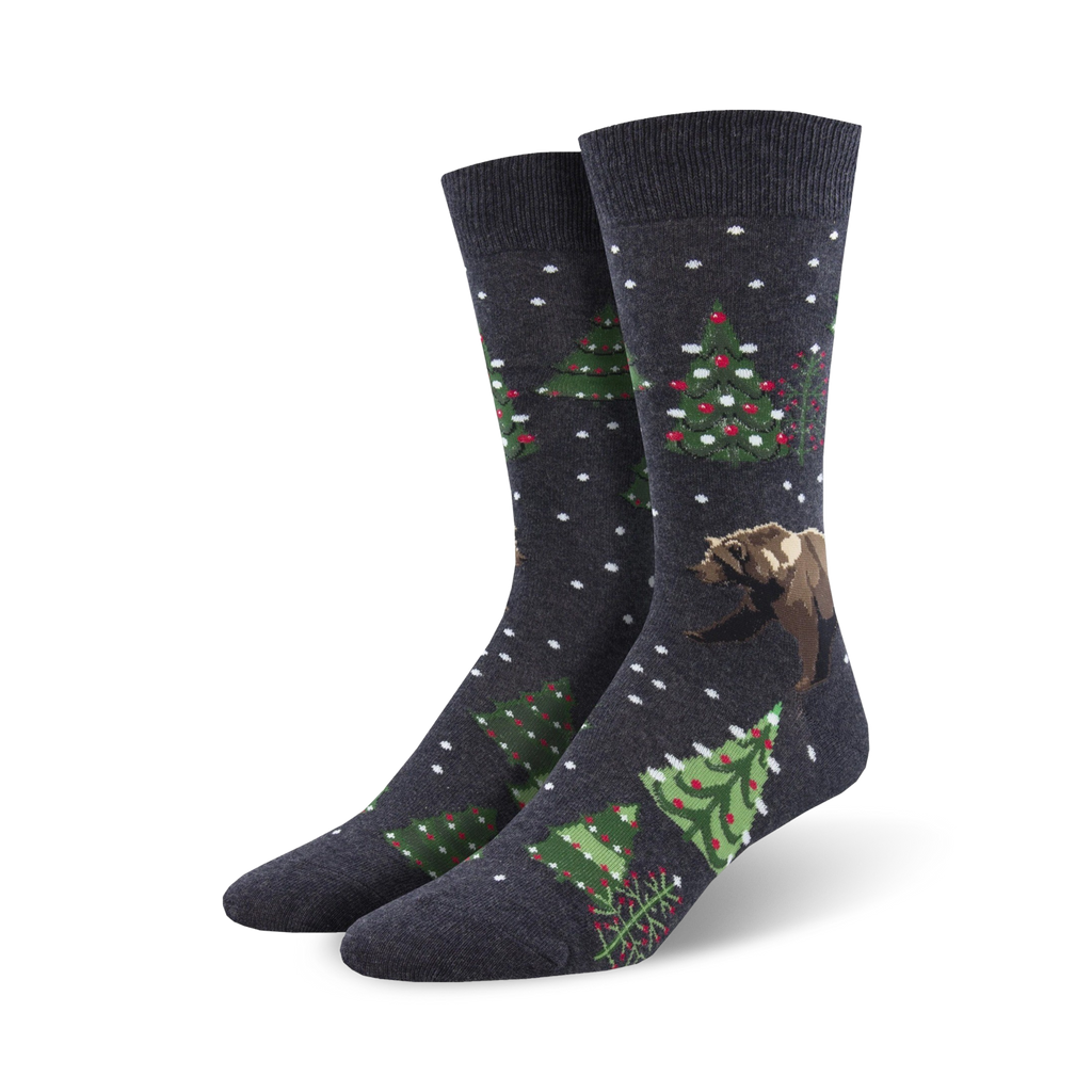 These Beary Christmas socks are the perfect way to embrace the holiday spirit. With a playful pattern of cartoon bears and Christmas trees, they'll bring a smile to your face all season long. These crew-length socks are designed for men, making them a versatile and festive addition to any wardrobe.