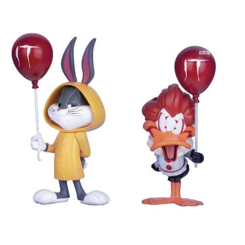 From Beast Kingdom. Celebrate 100 years of Warner Bros. with an incredible new crossover collection from Beast Kingdom's Mini Egg Attack series! This release showcases two iconic characters from the Looney Tunes and IT series: Bugs Bunny and Pennywise the Clown. Bugs Bunny takes on the appearance of the Little Boy from IT, while Daffy Duck undergoes a startling transformation into Pennywise himself. The figurines capture the essence of these characters, complete with iconic elements like the infamous red balloon and a yellow raincoat. These small yet intricately detailed figurines offer the perfect way to commemorate 100 years of Warner Bros. magic!
