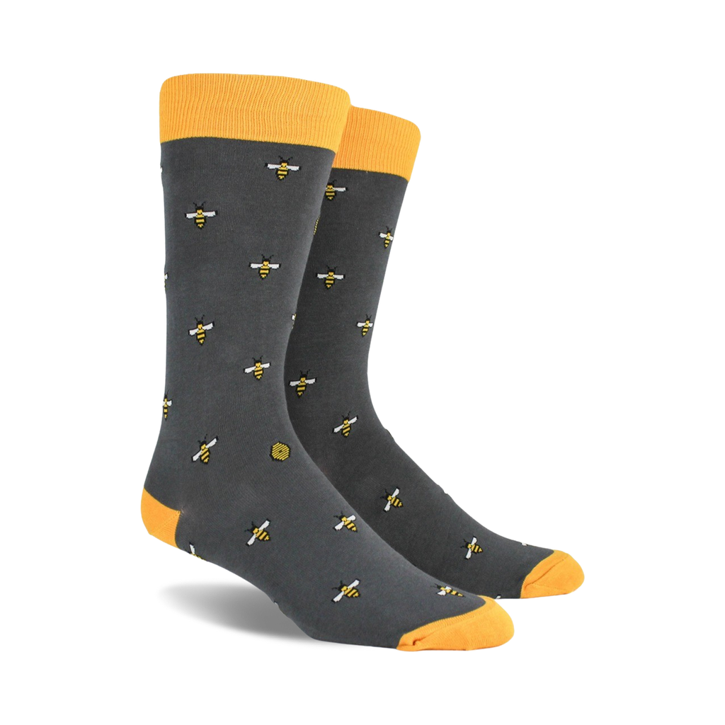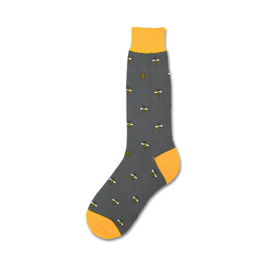 Buzz around and sting the boredom away with our dazzling yellow bee socks! Stripey socks alert everyone your - busy as a bee! Featuring delicate honeycomb details and a pop of yellow at the top, these crew socks are perfect for the man with a sweet tooth or a zest for life.