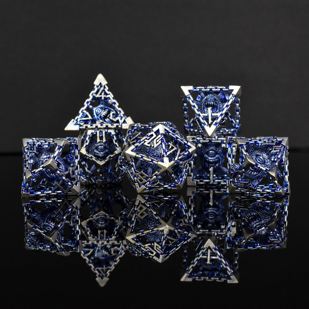 Beholder's Gates Hollow Metal Dice Set - Blue and Silver