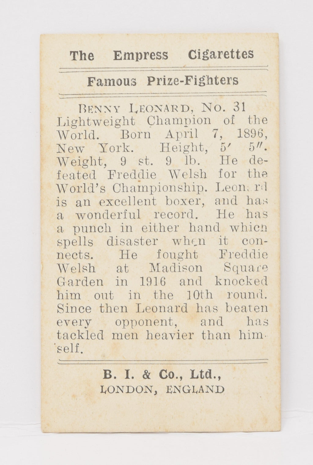 Benny Leonard #31 Empress Burstein Isaacs Famous Prize Fighters Boxing Boxer Card 1923