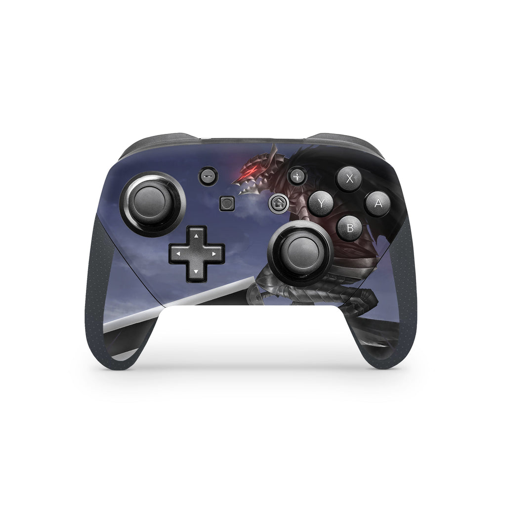 Embrace darkness with the Berserker Knight vinyl skin for your Nintendo Switch Pro Controller. This sleek design merges durable protection with bold, legendary visuals for fearless gamers.