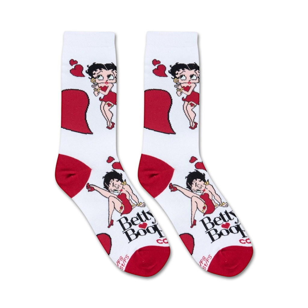 Betty Boop socks? These socks will make you feel like you're right out of a 1930s cartoon! They're covered in Betty Boop, the iconic flapper girl with her signature red dress and bob haircut. Perfect for a fun day or a night out, these socks are sure to turn heads. Who knows, you might even find your own Bimbo.