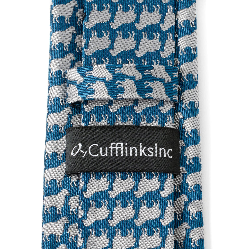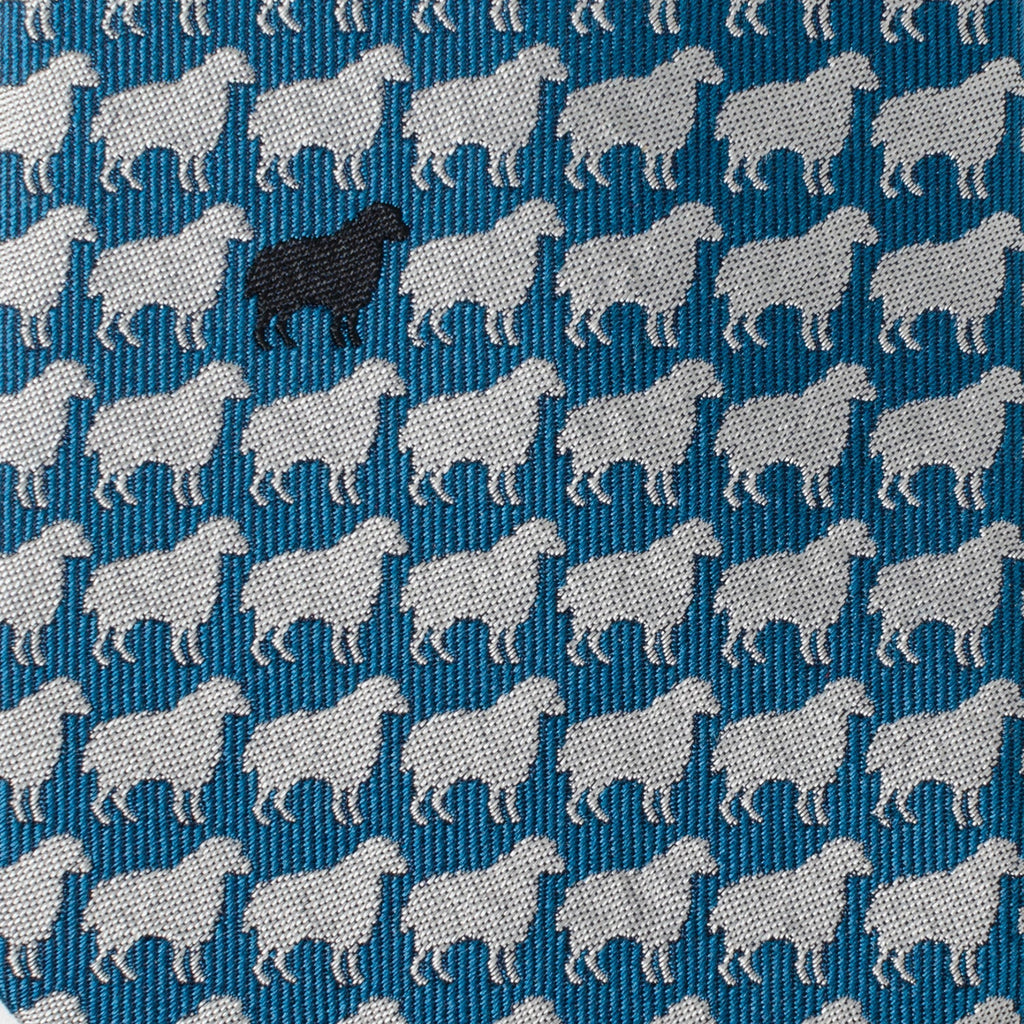 Be bold and stand out in the flock. Rows of grey sheep make up the majority of the design on this blue, 100% Silk tie. Not wanting to be lost in the monotony, the black sheep shakes up this repetitive pattern. Stand out at the office with this bold choice.