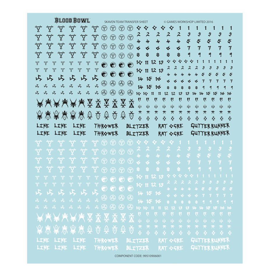 This multi-part plastic kit contains the components necessary to assemble a Skaven team for use in games of Blood Bowl. You’ll receive 2 Blitzers, 2 Throwers, 2 Gutter Runners and 6 Linemen, the perfect core for your roster. Also included are a transfer sheet, turn markers, extra balls, an example roster sheet, and 12 Citadel 32mm Round Blood Bowl bases featuring holes to keep the ball in.
