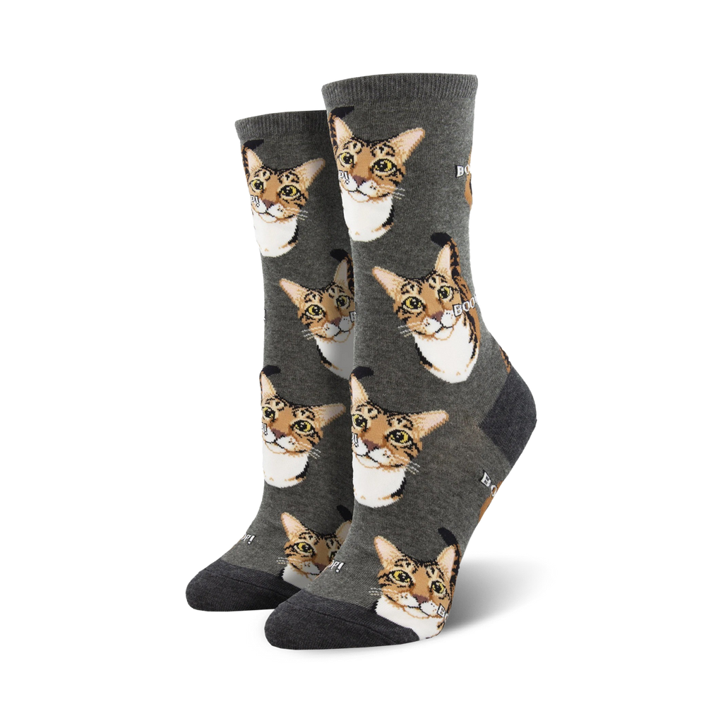 Boop those blues away with our fun gray crew socks! These adorable socks feature a pattern of playful cartoon cat faces with their tongues out, and the word "boop" in small white letters. Whether you're a crazy cat lady or just love a good pun, these socks are sure to put a smile on your face. Plus, they're purr-fect for showing off your feline fanaticism. Meow!