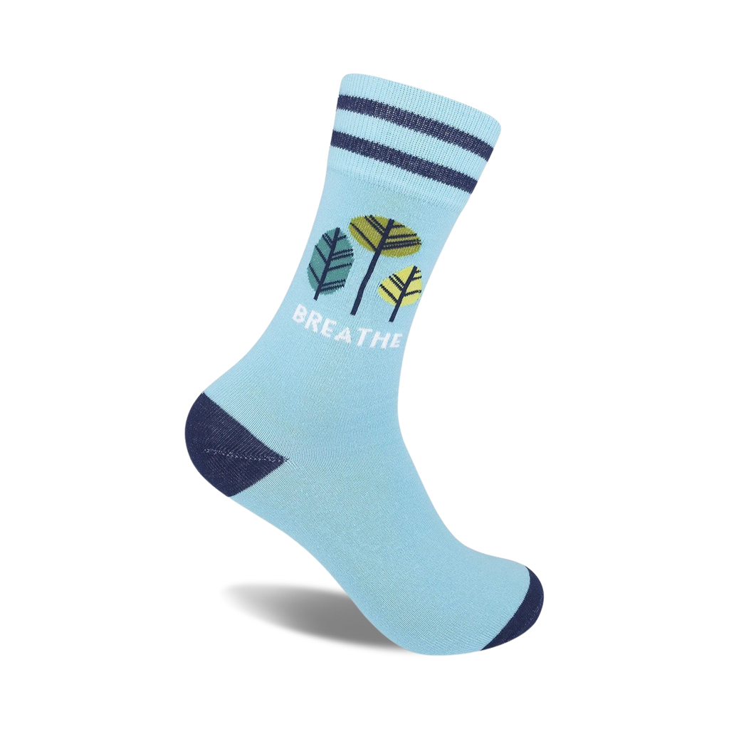 Take a deep "Breath" in these inspiring socks! With their calming blue and green tones, they'll remind you to pause, inhale, and appreciate the beauty of life. Picture this: you're wearing these socks, feet up, eyes closed, taking a moment just for you. Sounds like bliss, doesn't it? These socks are perfect for yoga, meditation, or just lounging around feeling fabulous. They're also a great gift idea for friends who need a little reminder to "Breathe."