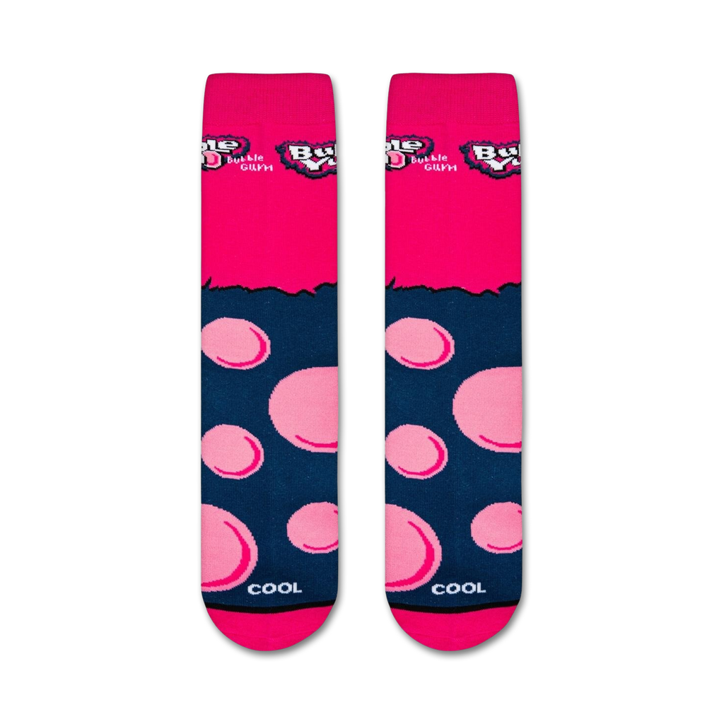 Prepare to take your feet on a flavorful journey with Bubble Yum Socks! These crew socks, designed for both men and women, feature a delightful pattern of light pink circles on a dark blue background, reminiscent of the iconic pink and blue gum. With the word "cool" playfully printed on the sole, these socks will have you feeling minty fresh all day long. Slip into a pair of Bubble Yum Socks for a sweet treat your feet won't forget!