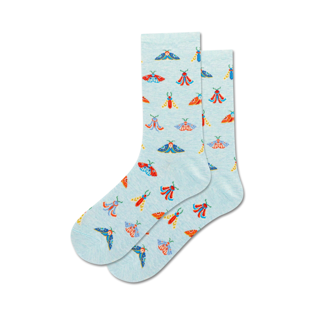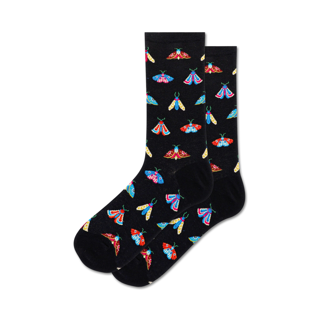 These black crew socks are no moth-er joke! The multicolored bug pattern features moths of all shapes and sizes, adding a touch of whimsy to your everyday wardrobe. Perfect for the entomology enthusiast or anyone who loves a good pun.