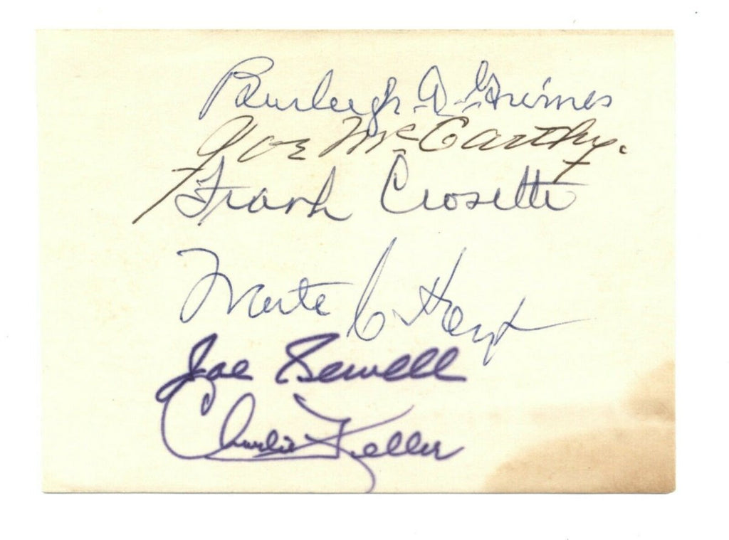 Joe McCarthy, Waite Hoyt, Frank Crosetti, Joe Sewell, Charlie Keller