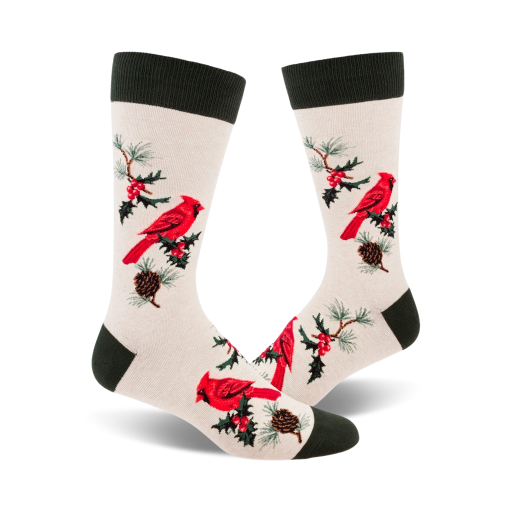 Introducing Cardinal Crew Socks - A Festive Treat for Your Feet! Deck your soles with the festive spirit of Christmas! Cardinal Crew Socks are a symphony of red cardinals, lush green pine boughs, and vibrant red berries, all dancing on a snowy white canvas. These socks are the perfect blend of comfort and cheer, bringing a touch of winter magic to your everyday style. Whether you're dashing through the snow or cozying up by the fire, these socks are sure to keep your feet warm and merry.