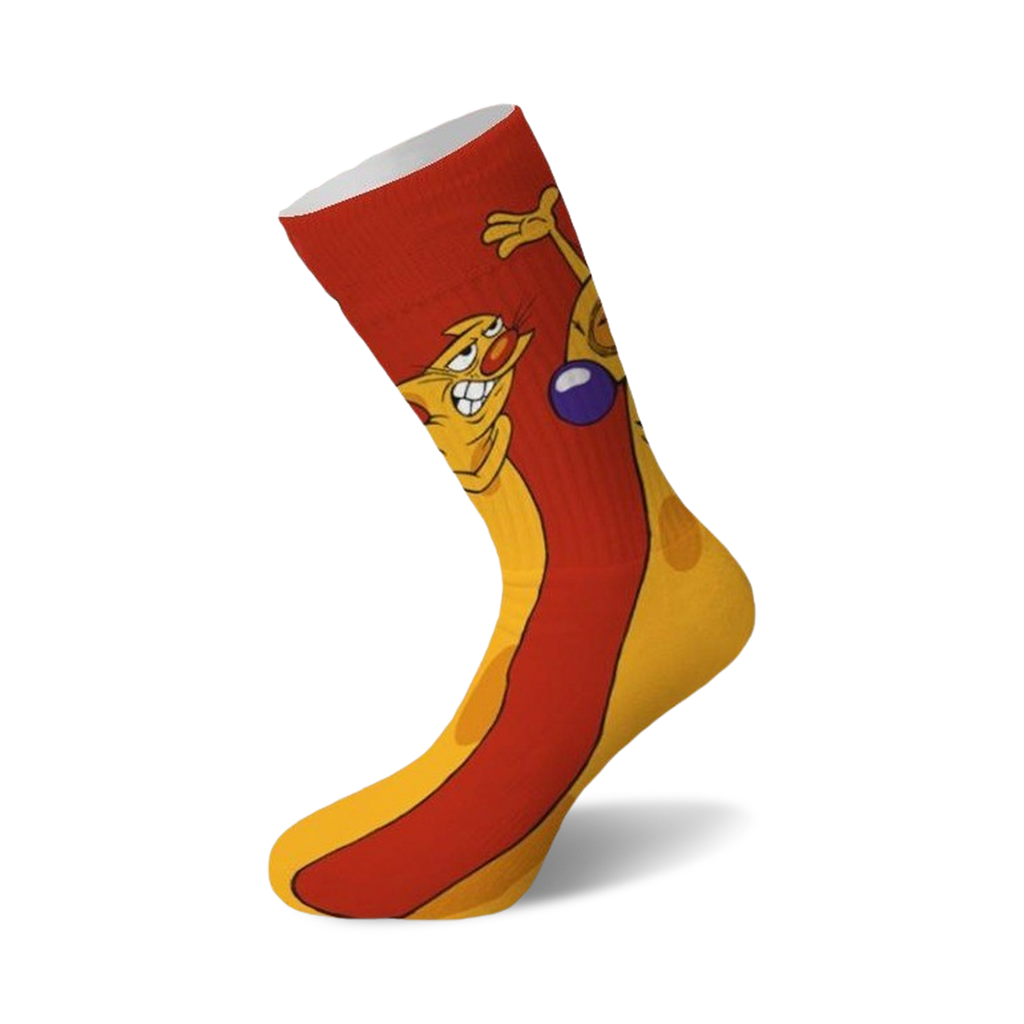 Your feet are about to embark on their wildest adventure yet with these Cat Dog 360 Knit Crew Socks! You'll be the coolest cat and top dog in the room with the adorable cartoon cat and dog, holding a purple ball of yarn. Step into these socks and you'll feel like you've been transported into a fun cartoon world. Don't be surprised if the socks start talking to you and telling hilarious jokes.