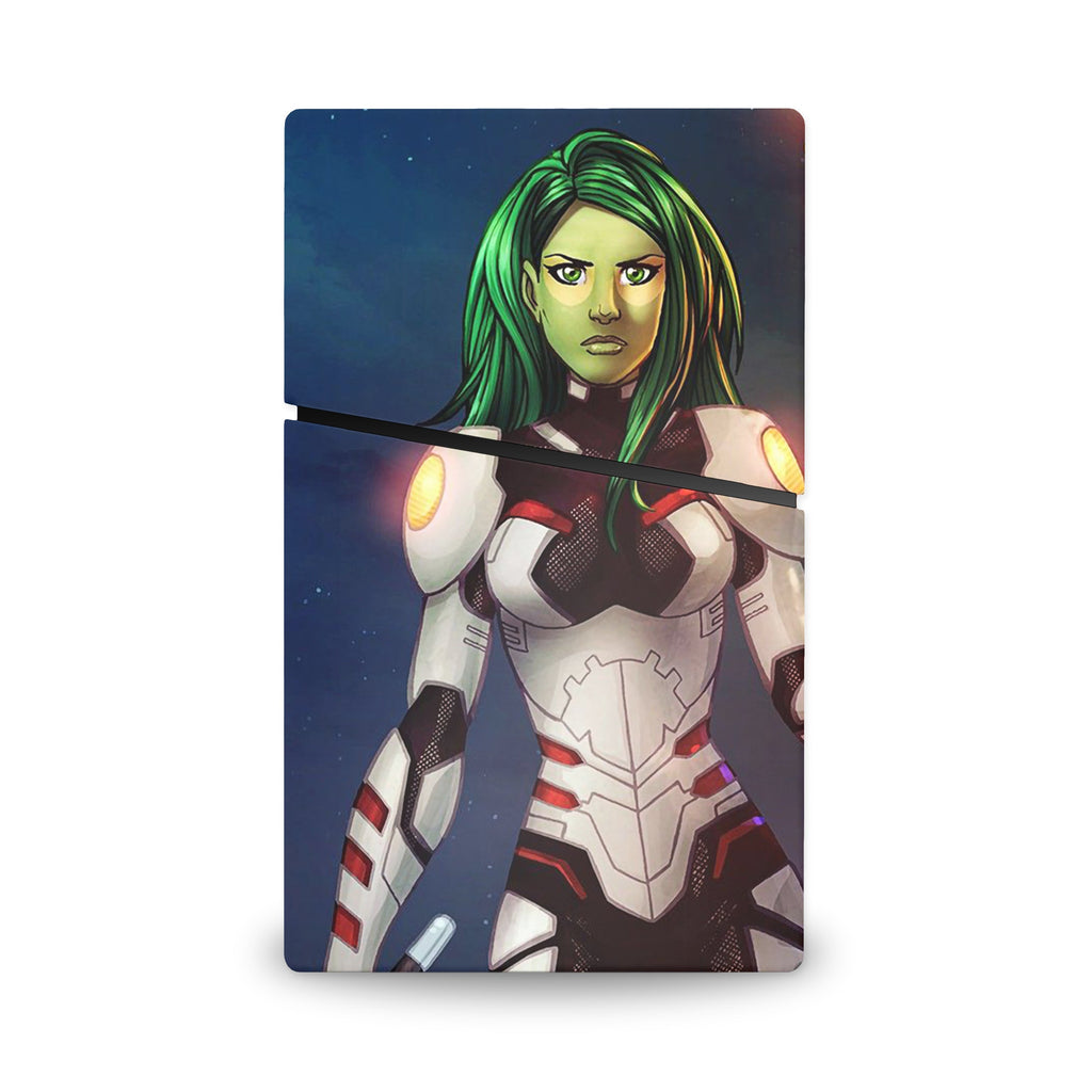 Deadly grace meets cosmic elegance in Celestial Assassin. With emerald accents, sleek armor textures, and orbital patterns, this PS5 Slim Digital skin is ideal for players who strike with speed, purpose, and poise.