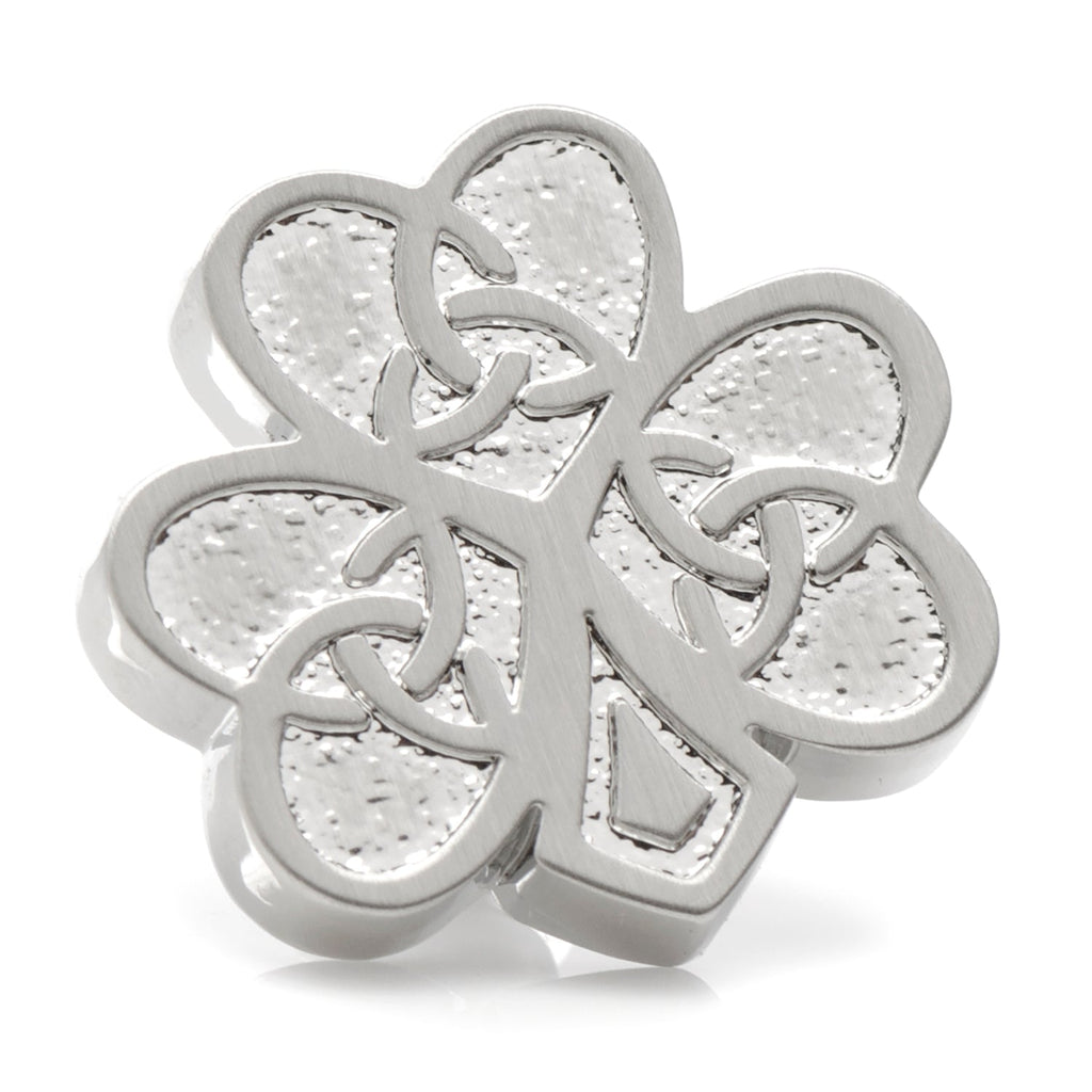 An elegant take on a clover design, this lapel pin features a raised trinity celtic knot design in the center. Teh clutch-back closure makes it easy to showcase on your lapel. Pairs with our matching Clover cufflinks.